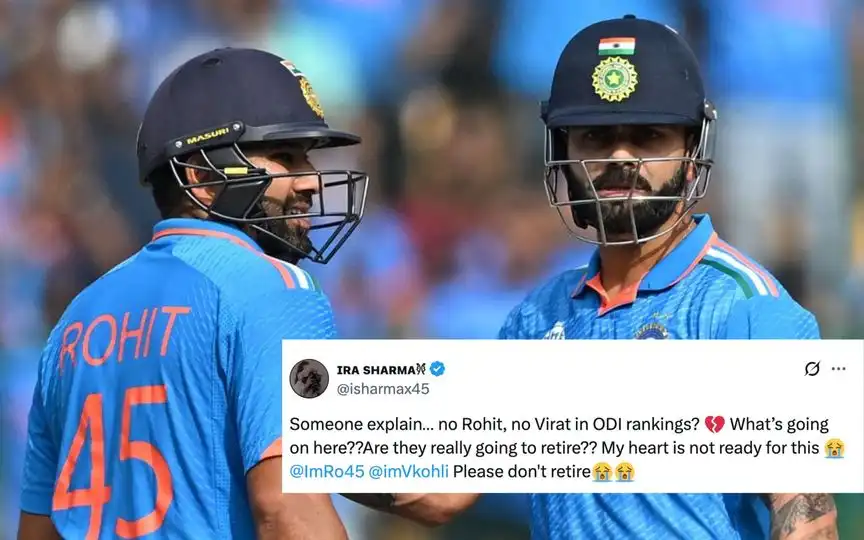 हुआ कुछ यूं कि आज सुबह icc ने जब अपनी ODI रैंकिंग जारी की तो उस रैंकिंग में विराट और रोहित दोनों अनुपस्थित दिखे , मजे की बात यह है कि रोहित की वर्तमान रैंकिंग दूसरे पायदान पर जबकि कोहली 4th पायदान पर हैं|ICC द्वारा जारी इस रैंकिंग में विराट और रोहित किसी भी पोजीशन पर नहीं दिखे उन दोनों का नाम आईसीसी रैंकिंग में था ही नहीं जिससे दोनों के प्रशंसकों काफी हैरान दिखे और वे कोहली और रोहित के इंस्टा ट्विटर हैंडल के साथ साथ गूगल पर भी सर्च करने लगे की क्या उन्होंने ODI फॉर्मेट से भी संन्यास ले लिया|