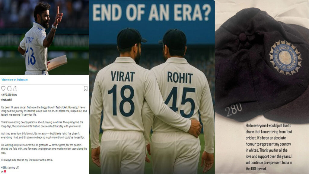विराट और रोहित दोनों ने ही टेस्ट और T20 से संन्यास ले लिया था जो काफी दुखद था , निःसंदेह उनके प्रशंसकों के लिए ODI से भी संन्यास लेना दुखो के पहाड़ टूटने जैसा ही होगा।विराट कोहली आप सब की तरह हमारे भी पसंदीदा खिलाड़ी है , जिन्होंने खेलते हुए देख कर आंखों को सुकून मिलता है, पर अफसोस ये सुकून के पल अब कम हो गए है , जल्द ही विराट और रोहित को वनडे फॉर्मेट में खेलते हुए देखने के लिए हम सभी खासा उत्साहित है।और वे अभी इस फॉर्मेट को छोड़ कर न जाए ऐसा प्रार्थना भी उनसे करते हैं ।